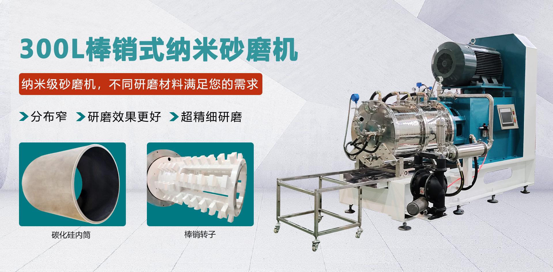 工業級棒銷動態(tài)砂磨機廣泛應用于微米級亞微米級、納米級的中高粘度物料的研磨,動靜環(huán)間隙出料,棒銷轉子結構滿足不同尺寸、不同研磨細度以及不同研磨工藝的生產需求 臥式砂磨機,適用于對研磨精度要求高的化工物料,連續(xù)封閉式高效率濕式研磨分散。 輸送泵有氣動隔膜泵和圓弧泵、刮板泵研磨介質為氧化錯珠,根據物料及細度要求選擇介質大小